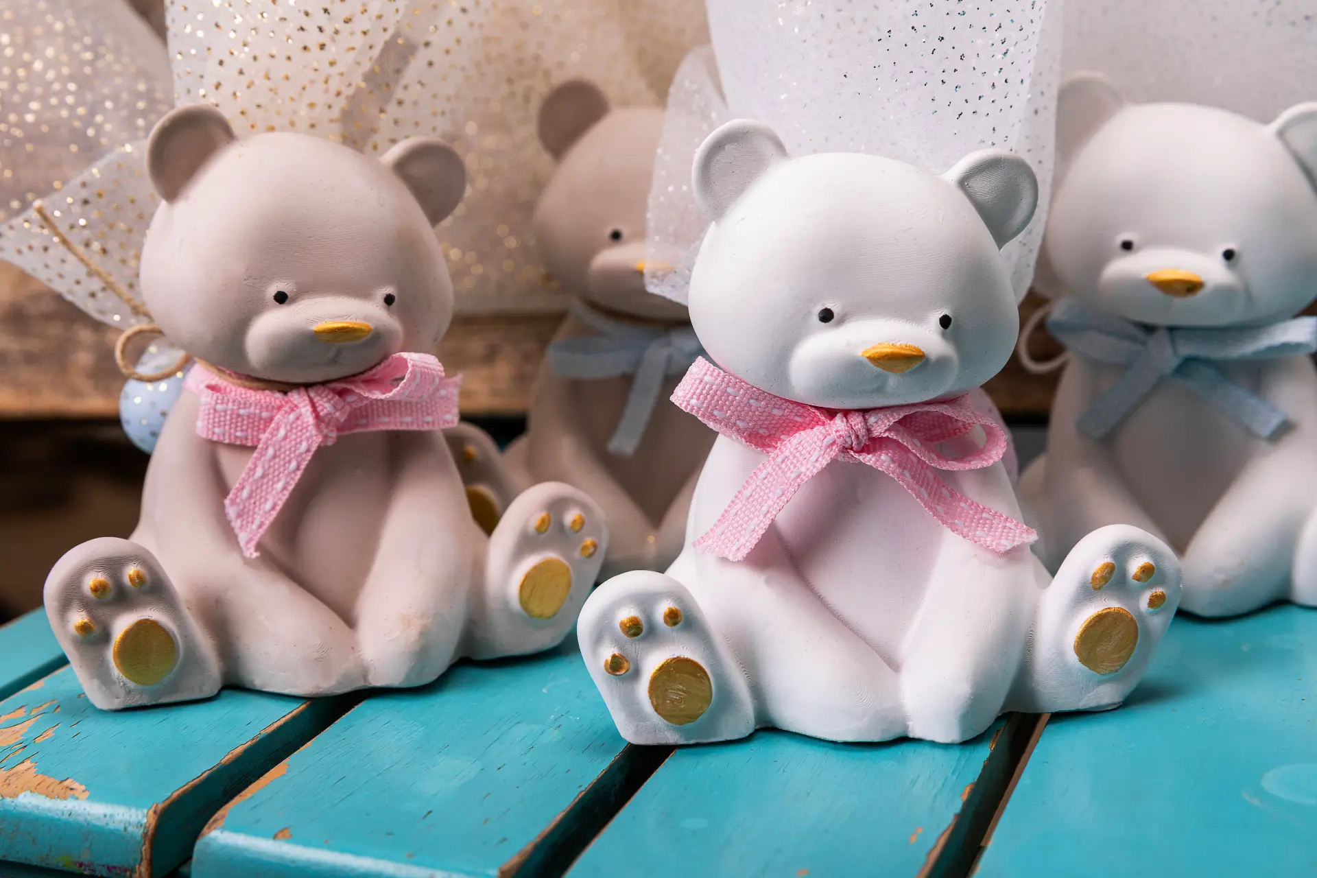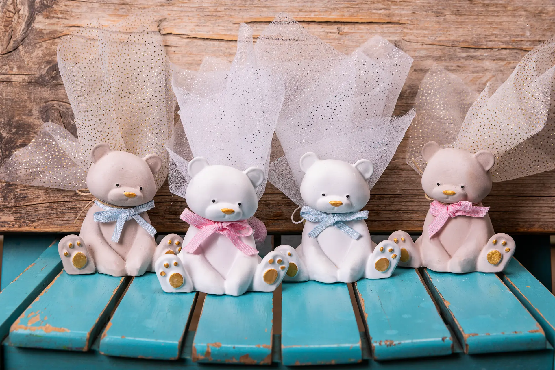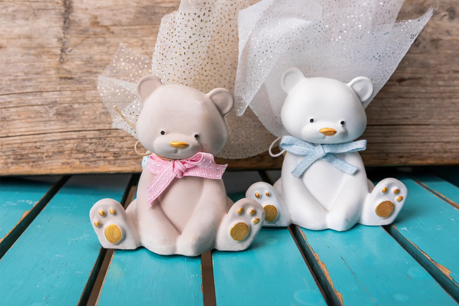 Χειροποίητο κεραμικό αρκουδάκι σε καθαρές, απαλές γραμμές, με διακριτικές χρωματικές πινελιές και φίνο τούλι που δίνει ανάλαφρη κίνηση στη σύνθεση. Μια τρυφερή παρουσία που κρατά την ευχή να μεγαλώνει με αγάπη, προστασία και ζεστασιά!